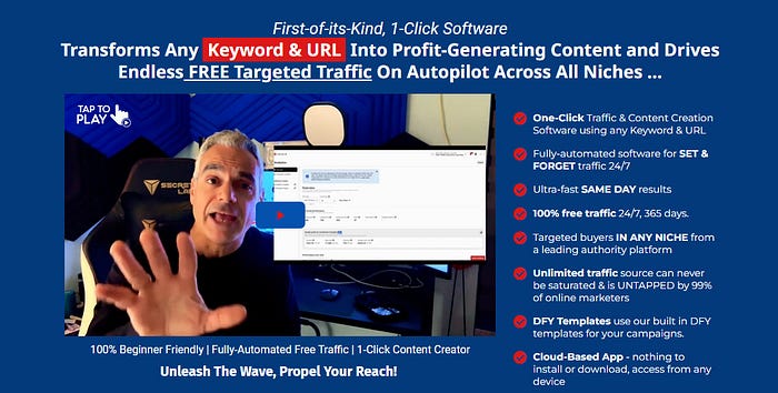 TrafficWave Generator emerges as a cutting-edge software designed to unlock the potential of free, targeted traffic for marketers, bloggers, and e-commerce entrepreneurs. With its user-friendly interface and innovative approach, it aims to automate content creation and drive organic traffic to your offers, thereby maximizing your chances of success in the competitive online landscape.