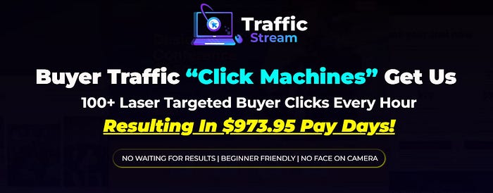 Traffic Stream is positioned as a game-changing traffic generation system designed to deliver laser-targeted buyer clicks consistently. Marketed as a beginner-friendly, set-and-forget solution, it promises to provide over 100 high-converting clicks every hour, resulting in lucrative paydays without the need for complex tech skills or being on camera. With its emphasis on simplicity and effectiveness, Traffic Stream aims to level the playing field for both novices and seasoned marketers alike.