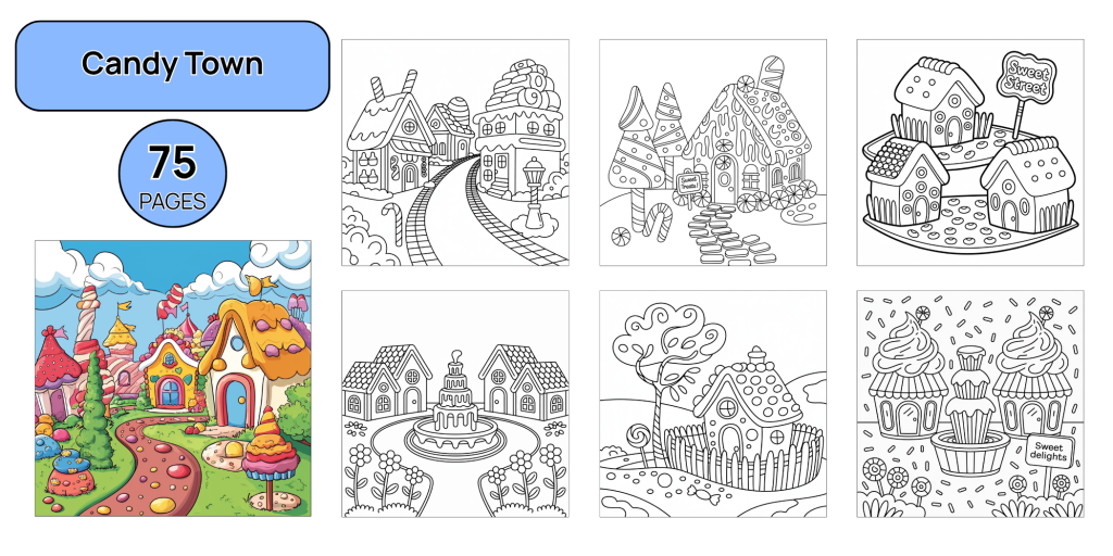 Scenery-themed coloring books featuring cheerful landscapes like candy towns, forests, beaches, and construction sites are steadily rising in popularity on platforms like Etsy and Amazon KDP. These vibrant and imaginative designs are especially appealing to parents, teachers, and young children who crave creative play, screen-free activities, and educational fun.