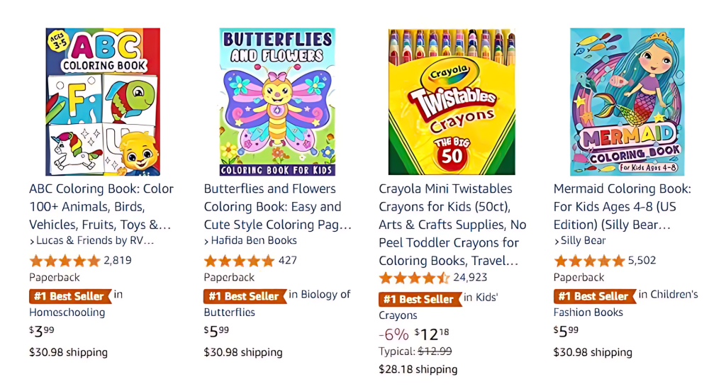 Amazon KDP: Tap into the huge demand for educational and recreational books for children. Optimize your listings with targeted phrases like “fun coloring book for kids” or “activity book for preschoolers.”