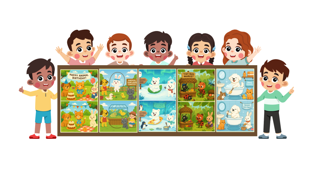 From the icy Arctic to the depths of the ocean, and from playful pets to wild jungle adventures — these themes give you endless variety to keep your books fresh and exciting.