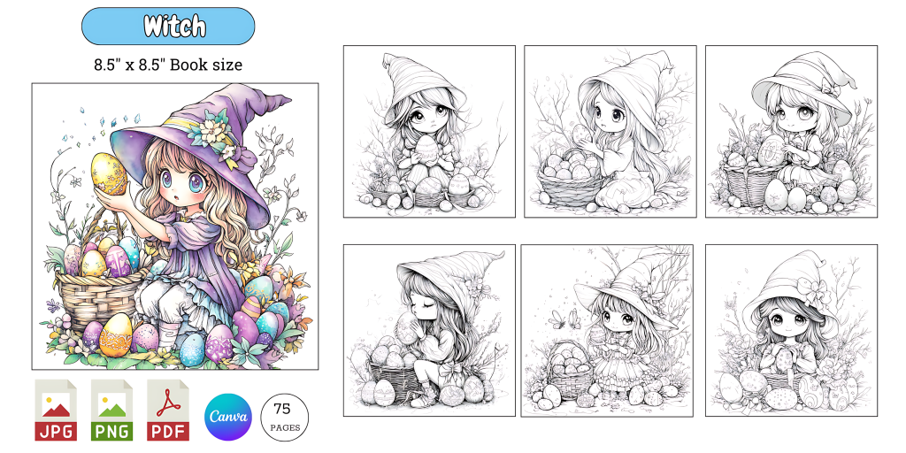 Easter-themed mystical coloring books, featuring beautifully decorated eggs, whimsical fairies, charming gnomes, mystical witches, and more, are rapidly gaining popularity on platforms like Etsy and Amazon KDP. These unique and seasonal yet timeless designs appeal to both children and adults who enjoy the relaxing and creative process of coloring. With the growing demand for high-quality, themed coloring books, now is the perfect time to enter this expanding market.